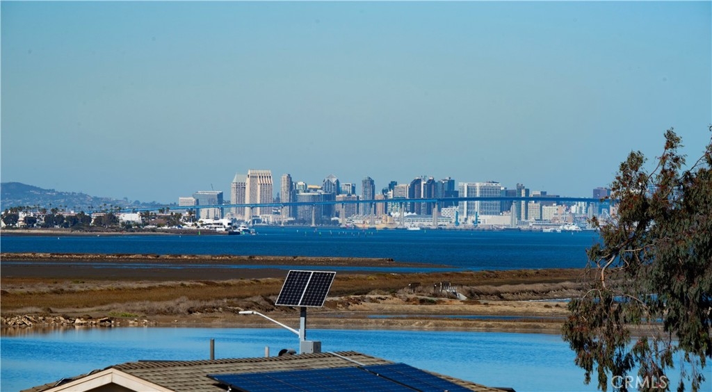 Top floor unit with expansive views of the city and in the distance view the bay & ocean, the Coronado Bridge & San Diego skyline! Enjoy awesome breezes & nightly stunning sunsets as both bedrooms & the living room have doors to the patio. What a wonderful location! You're 1.7 miles to sandy beaches, 1/4 mile to the bay and a couple blocks to the Bayshore Bikeway with 24 miles of land and sea access from Coronado, through South Bay to Downtown San Diego. This light bright condo offers wonderful upgrades: newer insulated doors & windows, master bath "barn door" cabinets, jetted tub, Cat 5e wiring and some updated fans & light fixtures. Here's a huge plus - PAID OFF SOLAR! Most of the appliances have been updated including the washer/dryer (in unit), gas stove with convection oven & 2023 refrigerator with craft orb ice maker. The new owner can add cosmetic updates that would finish the look by painting the interior & the kitchen cabinets. The two bedrooms & baths are separated, so the layout is great for roommates. This 7 unit building has a security gate and a common area rooftop view deck. Another big plus: the private HUGE garage offers OFF STREET PARKING accommodating 2 cars plus storage space. The surrounding area offers a variety of restaurants, shopping, a great beachy feel with new coffee shops, breweries and eateries popping up frequently. If you haven't been to Imperial Beach lately, you must come see the changes! The HOA covers sewer, trash, front yard maintenance, building insurance & garage electricity all for only $275/mo. Enjoy the outdoor lifestyle that Southern California is known for with year round temperate climate all for a GREAT PRICE!