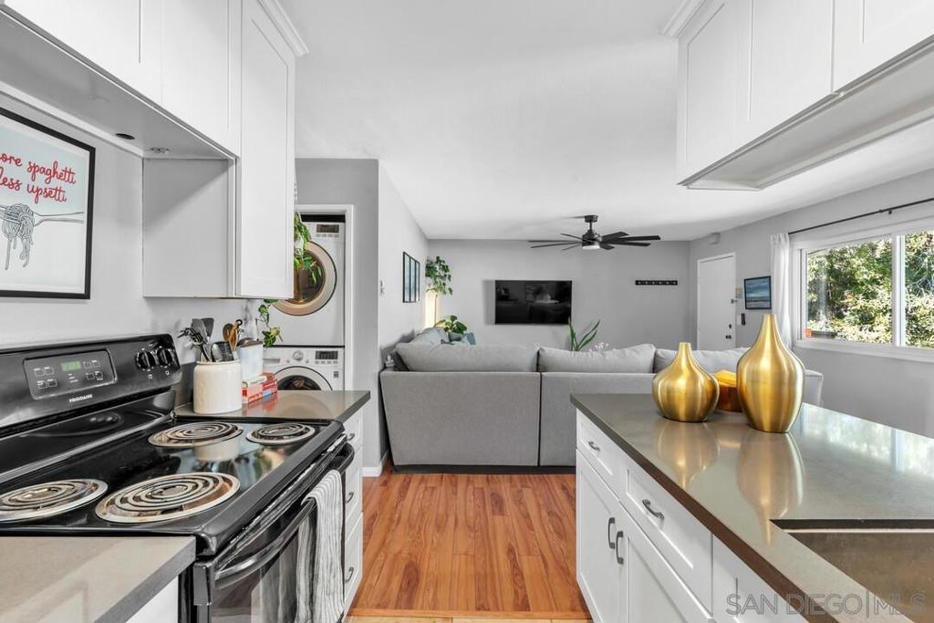 Step inside this beautifully updated Imperial Beach condo and instantly feel the relaxed coastal charm. The open floor plan is filled with natural light from oversized windows, creating a bright and airy beach-inspired living space, complemented by luxury vinyl plank flooring throughout. The upgraded kitchen features stainless steel appliances, white cabinetry and black quartz countertops. The dining area features newly installed recessed lighting and a functional layout that flows seamlessly into the main living area. Down the hall, you’ll find two generously sized bedrooms and two full bathrooms, offering comfortable and flexible living. Large windows throughout the home invite refreshing cross breezes. Additional conveniences include an in-unit full-sized washer and dryer, plus both a garage and carport for parking. Residents also enjoy a beautifully maintained courtyard with lush grass and a picnic area, in inviting space to relax and enjoy the Southern California sunshine just minutes from the beach. Broker and Broker Agents do not represent or guarantee the accuracy of the square footage, permitted or unpermitted space, bd/ba count, lot size/dimensions, schools, or other information concerning the conditions or features of the property. Buyer is advised to independently verify the accuracy of all information through personal inspection & with appropriate professionals to satisfy themselves.