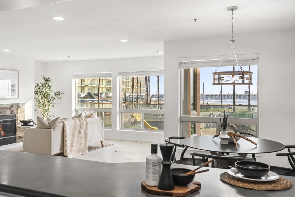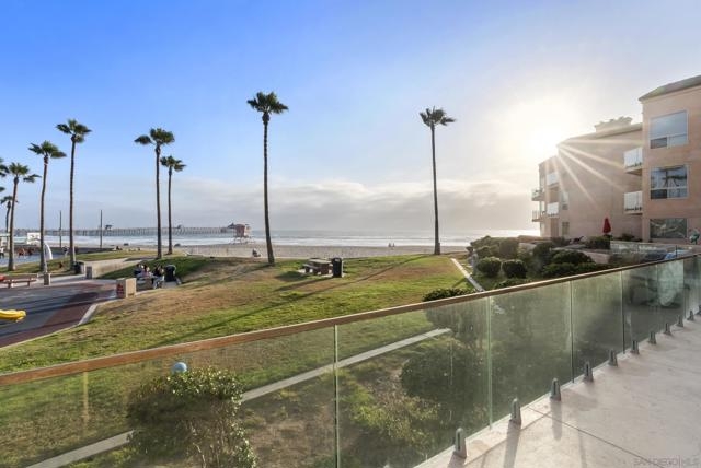 Whether you’re searching for a serene weekend getaway, a lucrative short-term rental, or the perfect place to call home with the Pacific Ocean at your doorstep, this Imperial Beach condo delivers on every level. Set within a secure, VA-approved gated community that allows vacation rentals, it offers rare flexibility for both lifestyle and investment. This desirable first-floor residence features one of the largest patios in the complex—an expansive private retreat where you can soak in sweeping views (see supplement) of the surf, the iconic Imperial Beach Pier, and lively Dunes Park. From your living room, step right onto the veranda and enjoy your morning coffee while the ocean provides the soundtrack. Inside, the home shines with thoughtful updates: fresh interior paint, new kitchen appliances, modern LED recessed lighting, stylish fixtures, and a brand-new HVAC system. Both bathrooms have been upgraded with sleek quartz countertops, and the spacious bedrooms provide a restful haven. Floor-to-ceiling dual-pane windows frame endless ocean vistas, filling the open living area with light and energy. The community enhances the experience with resort-style amenities, including a newly renovated pool and spa, plus two secure parking spaces and additional storage. Best of all, you’re just steps from local dining, shopping, and miles of sandy beach—embracing the ultimate walkable coastal lifestyle. Do not miss this rare opportunity to own front-row ocean views, unforgettable sunsets, and the effortless rhythm of beachfront living in Imperial Beach.