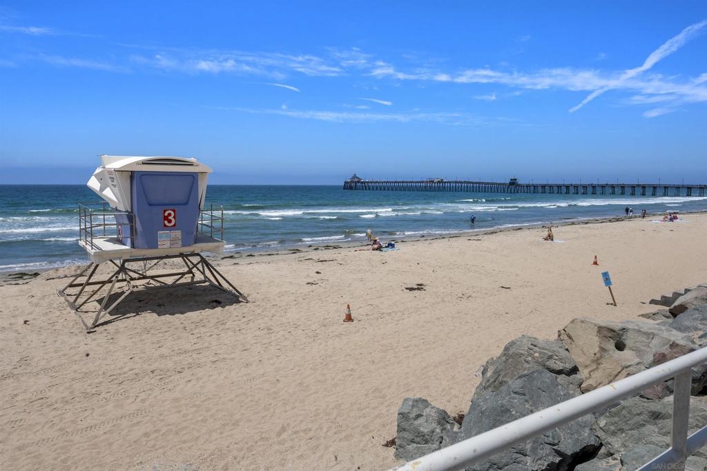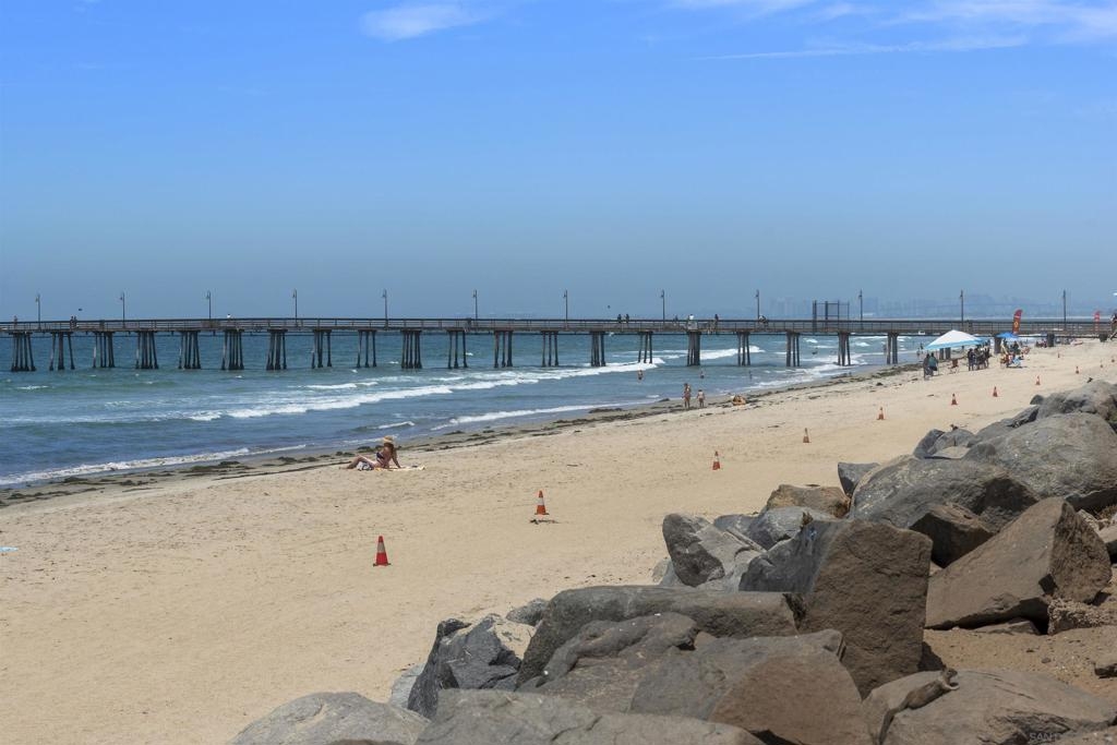 Multiple viewing decks await you to take in the magnificent Pacific and adjacent estuary just steps from your front door. This generous sized townhome features a first floor bedroom and full bath with stunning views of the ocean and iconic Imperial Beach pier. You will appreciate the open concept kitchen, dining, and living room on the 2nd floor with wrap around views, and gas fire place as well as the gorgeous Chefs kitchen with stainless steel appliances and breakfast bar. Retreat to your luxurious master bedroom & bath after a day on the beach. Enjoy the bustling restaurants and businesses in friendly laid back and Vibrant Imperial Beach!