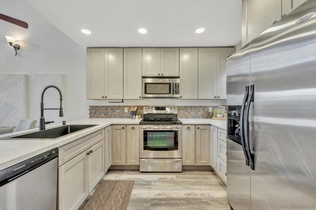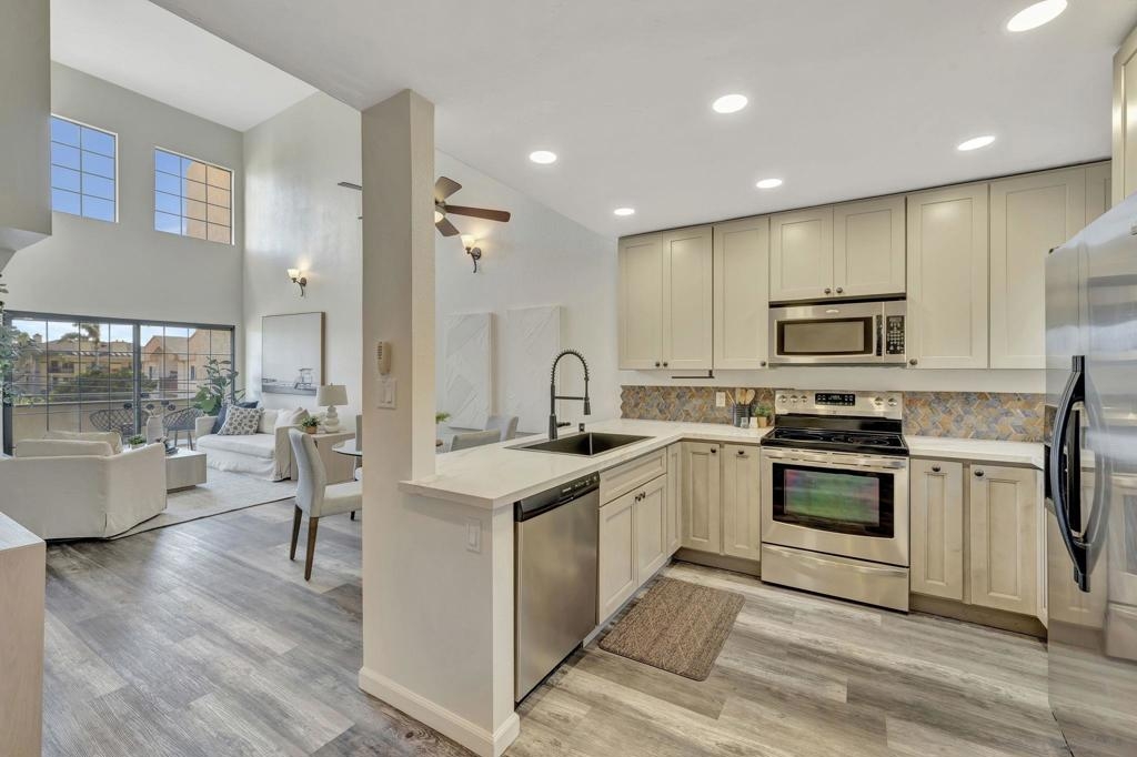 Enjoy coastal living in this beautifully updated townhouse just 2 blocks from the beach! COMPLEX VA APPROVED! Featuring 3BRs + Loft & 2 full BAs, this home offers a smart layout with 2-bedrooms & a full bath on the entry level. Upstairs, the private primary suite boasts a remodeled BA with elegant tile walls, new vanity, modern fixtures & a freestanding soaking tub/shower. Adjacent loft adds great flex space for office, gym or reading nook. The 2024 kitchen update includes shaker cabinets & quartz counters + new vinyl plank flooring (2023) throughout. Tons of windows, light and airy. HOA offers roof top deck w/ amazing views. Prime location—walk to the IB Pier, local restaurants, coffee shops, and nightlife, or take a scenic bike ride to Coronado. Quick access to I-5 makes commuting a breeze. With modern upgrades and beachside convenience, this townhouse is a must-see. View Today!