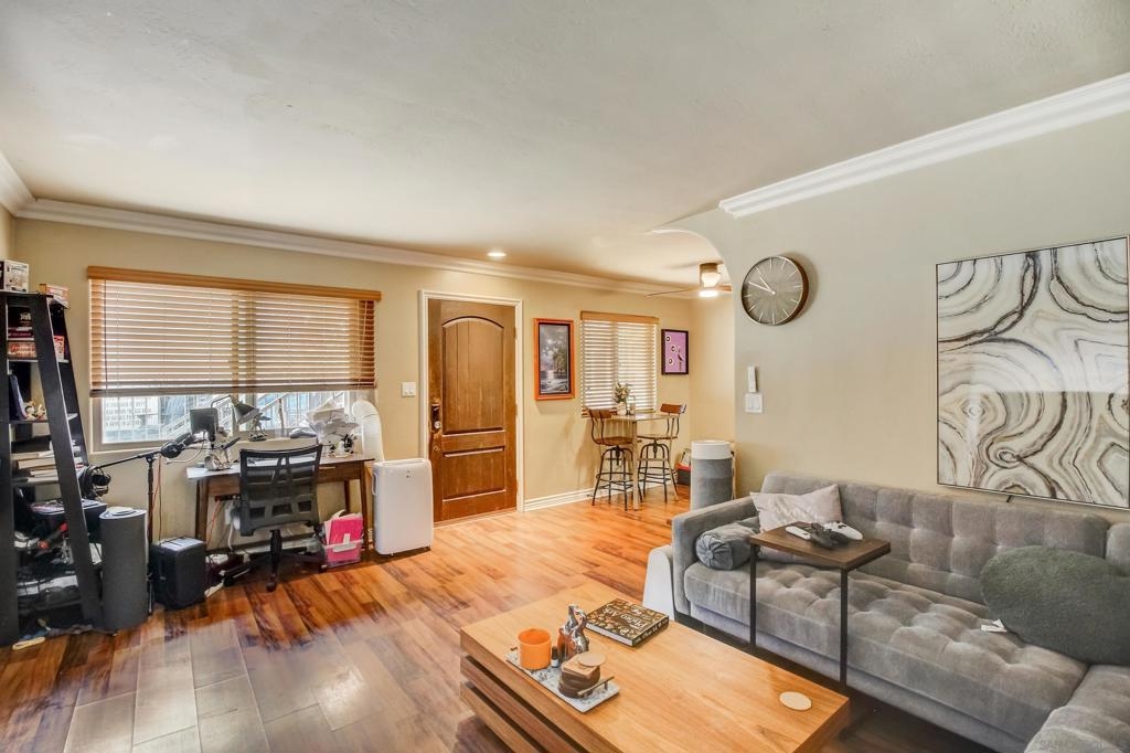 Gorgeous downstairs, corner unit in the gated community of Tapestry. Enter to gaze upon an open floor plan adorned with crown molding and stunning laminate flooring. The kitchen provides plenty of cabinet space, granite countertops, and stainless steel appliances. In-unit laundry accommodates a stacked washer and dryer. The unit is conveniently located close to the workout room and pool! One assigned parking space makes parking a breeze - a must in beach communities. Approved for VA financing & possible VA assumption available with 2.25% interest rate! Tapestry offers its residents controlled access, a fitness center, sparkling pool, BBQ and outdoor eating area. Off the beaten path, your client will love the proximity to the coast and the lovely upgraded finishes. Minutes from Imperial Beach Pier where you can frolic in the waves, view the art installations and grab a bite to eat at one of the numerous eateries. Come see the best before it’s gone.