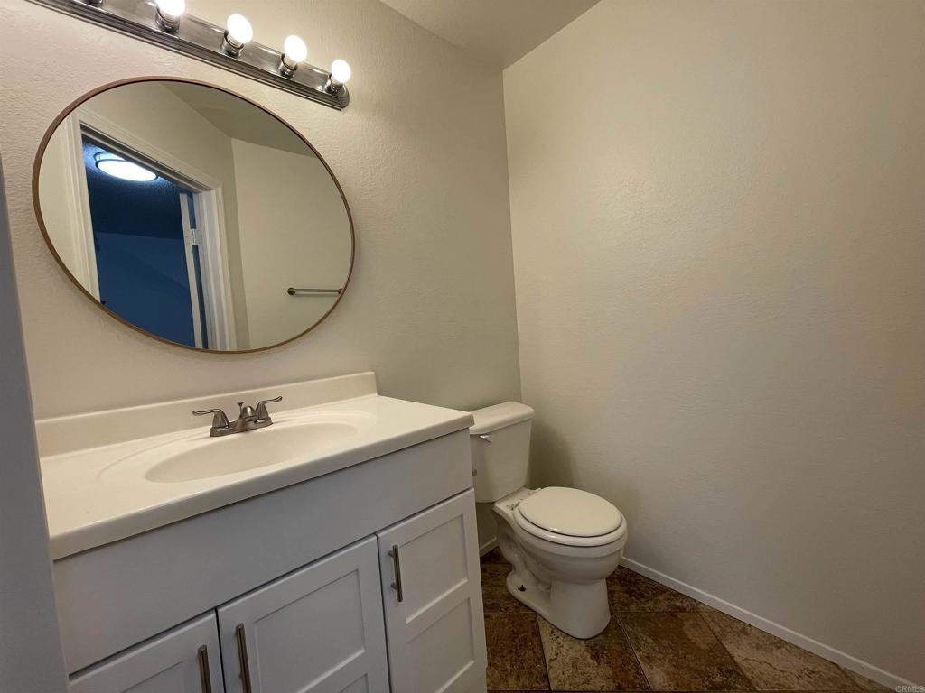 Newly refurbished tri-level condo in VA-approved complex. Featuring a 2 car garage which gives access to the home. There is a half bath powder room just off the living room. Sliding door leads to a private enclosed patio. Both bedrooms are upstairs, feature ample closet space, and are situated on either side of a full bath. Primary bedroom has a cozy balcony perfect for sipping a morning coffee. Brand new flooring, freshly painted, and new lighting fixtures throughout.