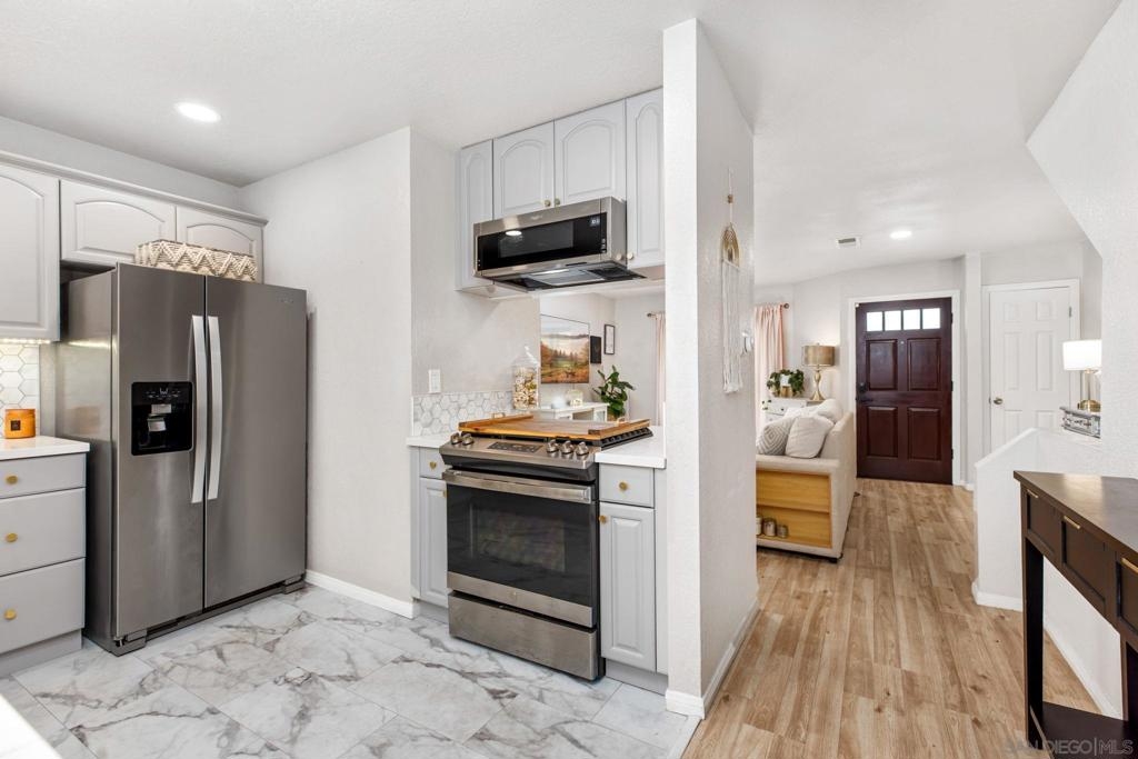 Welcome to Tradewinds II in Imperial Beach! VA approved, this beautifully renovated tri-level townhome offers coastal living at its finest. The entry level features a spacious living room, a modern kitchen with newer appliances, a convenient half bath, and a brand-new whole house fan for year-round comfort. Upstairs, you’ll find two generous bedrooms with walk-in closets, including a primary suite with its own private patio, plus a full bathroom. Every level of the home opens to its own outdoor patio—three in total—perfect for enjoying the ocean air. The attached two-car garage includes laundry with washer and dryer hookups. Ideally located just minutes from the beach with easy freeway access, this home is the perfect blend of comfort and convenience.