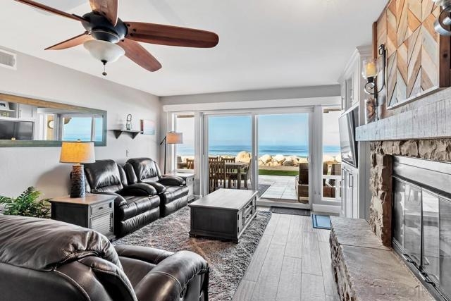 Experience the best of beachfront living in this perfectly maintained condo located directly on the sand in Imperial Beach. This entry level unit offers just under 2,000sq ft of open-concept living space with unobstructed ocean views from the living room, dining area, and primary suite. The updated kitchen features quartz countertops, stainless steel appliances, a double oven, and a large prep/bar area—ideal for entertaining. The primary bedroom has an ocean view and direct access to the patio and a spa-like ensuite bathroom. Additional features include a gas fireplace, in-unit laundry, secure garage parking, and private beach access. The unit is part of a well-maintained building just blocks from the Imperial Beach Pier, restaurants, and shops. A rare opportunity to own a true oceanfront property in a vibrant, up-and-coming coastal community.