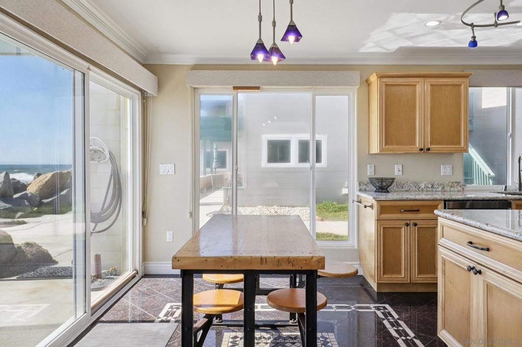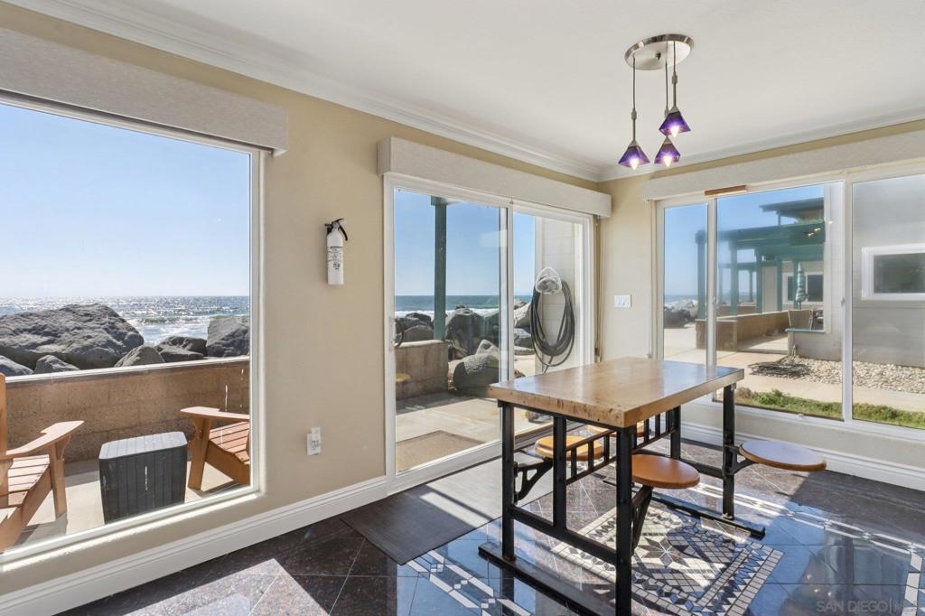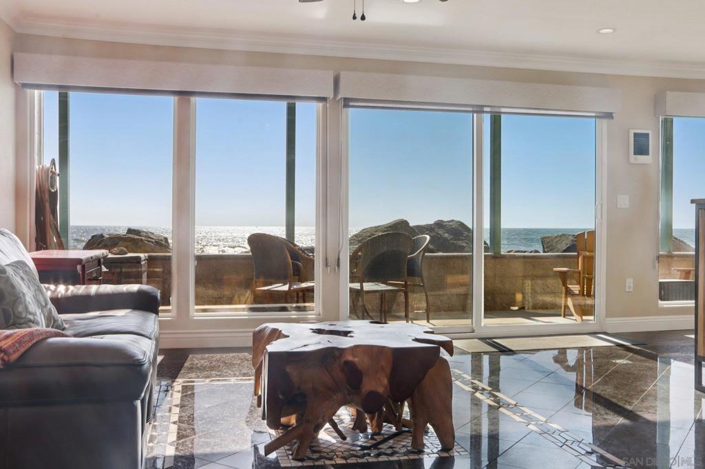 Exquisitely reimagined 3-bedroom, 2.5-bathroom oceanfront residence on Seacoast Drive. This ground-level home offers views of the Pacific from nearly every room, with the ocean just steps beyond your private patio. Thoughtfully transformed through a complete renovation, the residence was structurally enhanced with seismic-rated footings and shear walls. Creation of a light-filled living area was achieved through a revised floorplan and use of laminated beams to open up spaces. Above and underground plumbing, gas and electrical were replaced and updated to current code, patio was redesigned for storm surge protection and drainage. Floor-to-ceiling windows were added to frame the ever-changing seascape, while refined finishes such as travertine and granite flooring, stone fireplace, and multizone heating evoke a sense of comfort and understated luxury. The gourmet kitchen is appointed with premium appliances, a granite-clad island, and seamless integration into the main living spaces—perfect for both intimate evenings and elegant entertaining. The bathrooms, equally bespoke, feature custom cabinetry, designer fixtures, and refined finishes throughout. The primary suite is complemented by two generous guest rooms joined by a Jack-and-Jill bath. Additional highlights include a powder room, an in-unit laundry, and upgraded doors. Just south of the Imperial Beach Pier, this coastal residence is moments from fine dining, boutique shops, and the scenic beauty of Palm Avenue. With a one-car covered garage, this turnkey home is a refined retreat where luxury meets the oceans edge