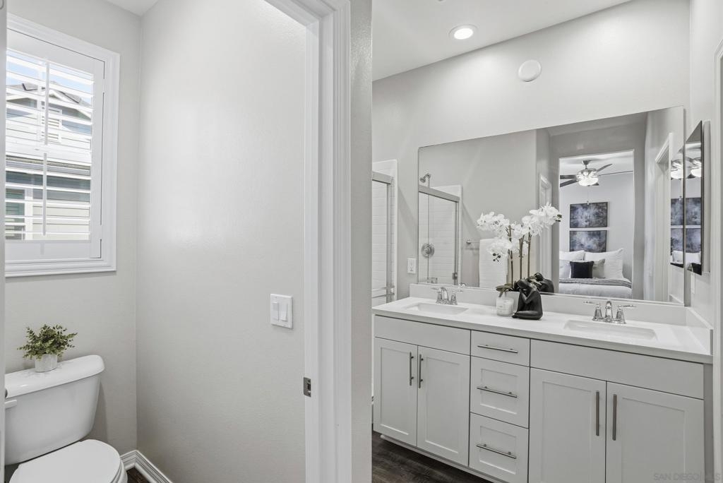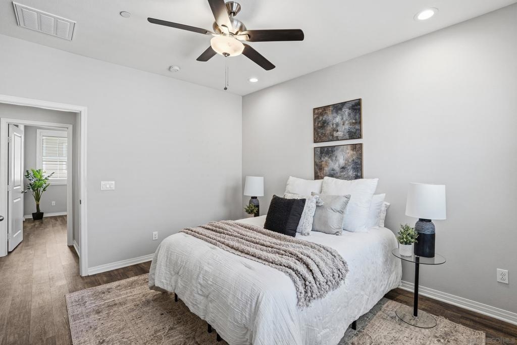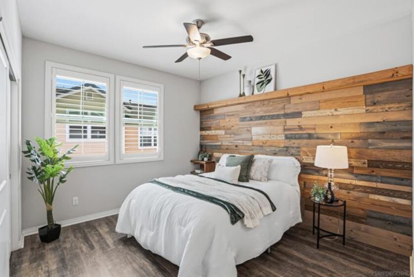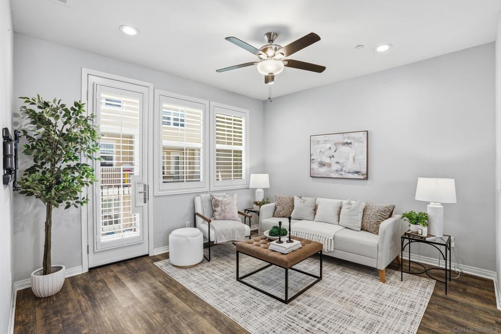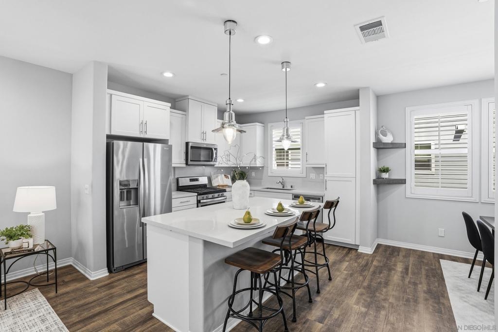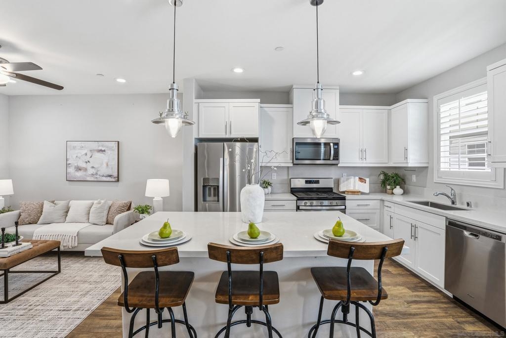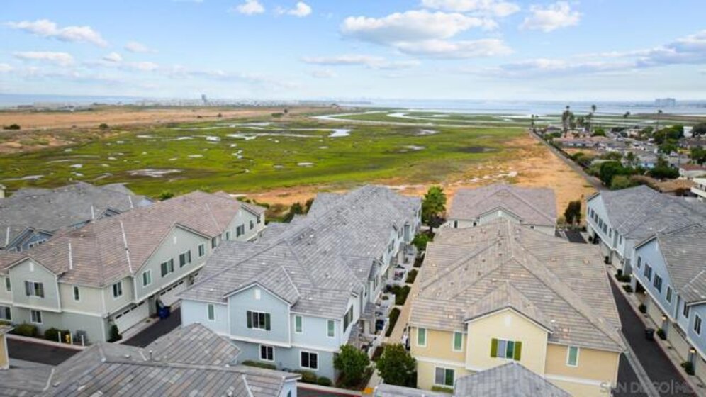 VA APPROVED! Tucked away in the sought-after Bayside Landing community, this newer-built (2018) townhome offers the perfect blend of comfort, style, and convenience. Featuring one of the few desirable two-bedroom floor-plans with a true open-concept layout and ample island, the kitchen is designed for both everyday living and easy entertaining. Upstairs, you’ll find luxury vinyl flooring throughout, along with a thoughtfully designed layout that includes laundry on the same level as the bedrooms. The spacious primary suite offers a walk-in closet and an oversized en-suite bath, creating a private retreat to unwind. The entire unit has custom built-ins and shelving throughout, including both closets, bar area, dining room and bathroom. For further convenience, the unit also has an upgraded full two car garage with storage, epoxy coating, and a tankless hot water heater. Located just steps from the Bayshore Bikeway, this home is ideal for an active coastal lifestyle, whether you’re biking into Coronado, heading toward the upcoming Gaylord Pacific Resort, cruising over to the new local Suncoast Coop, or making your way to Seacoast Avenue for dining, coffee shops, and beach days. Bayside Landing residents enjoy access to resort-style amenities including a pool, hot tub, and community BBQ areas.