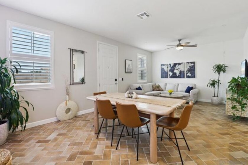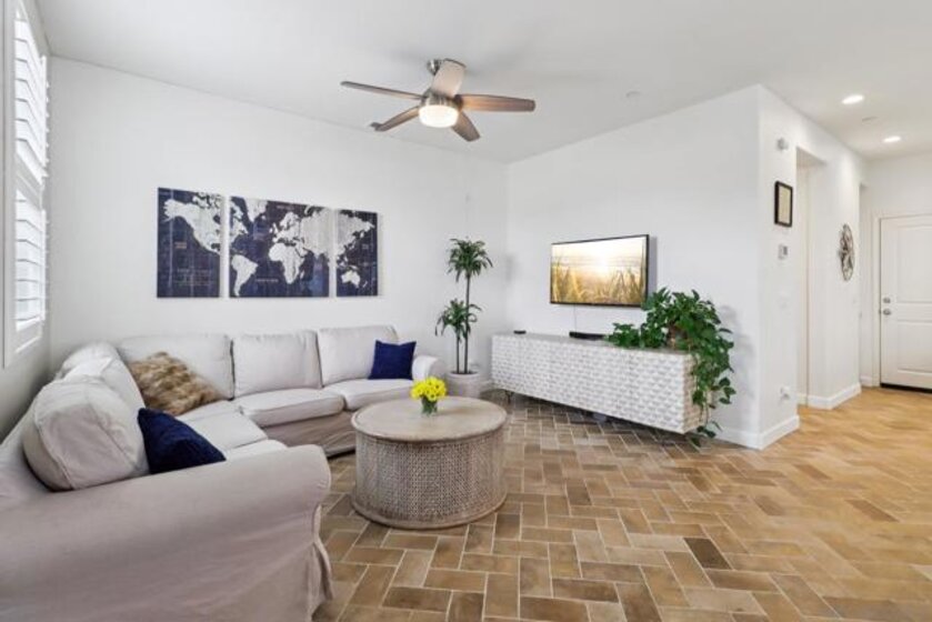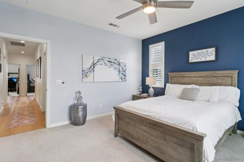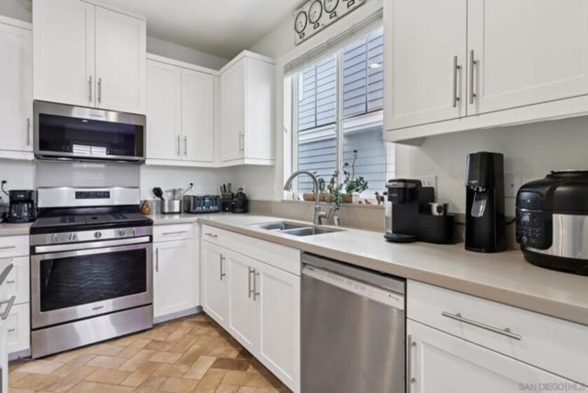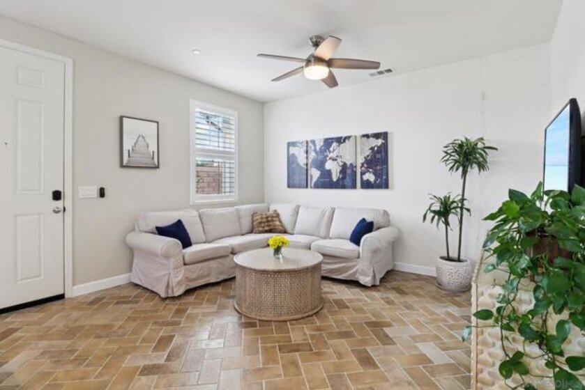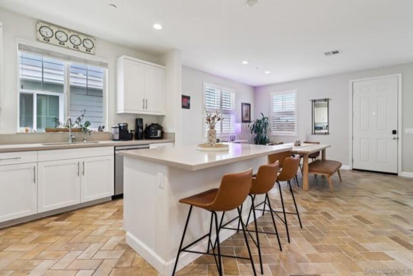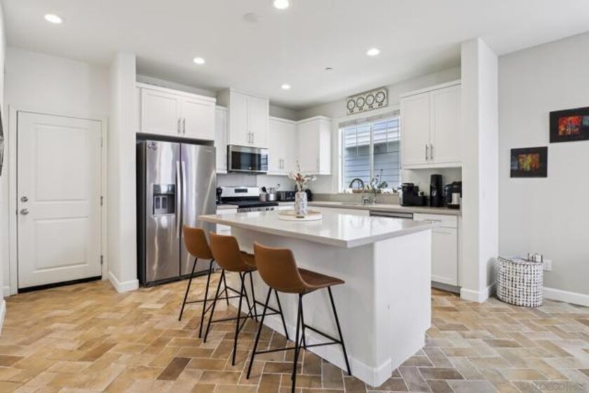 Discover the charm of 511 Surfbird Ln, a contemporary gem in the lively Bayside Landing community of Imperial Beach, where short-term vacation rentals are permitted. This inviting home features a bright, open-concept living space with elegant herringbone-patterned glazed porcelain tile flooring throughout the first floor. The stunning kitchen, a focal point of the home, showcases sleek quartz countertops, stainless steel appliances, a spacious island, and a breakfast bar ideal for morning coffee or casual gatherings. Upstairs, cozy carpeted bedrooms are connected by engineered white oak hardwood flooring on the stairs and hallways. The expansive primary suite offers a tranquil retreat with a luxurious bathroom and generous walk-in closet. High ceilings and abundant natural light create a fresh, airy atmosphere throughout the home. The large 2-car garage, equipped with a 240V EV charger, provides ample space for vehicles and storage. As part of the VA-approved Bayside Landing, residents enjoy access to a community pool, relaxing spa, playground, and BBQ grills, perfect for outdoor fun. Located steps from the scenic San Diego Bayside Bike Path, stretching from National City to Coronado, this home is a haven for outdoor enthusiasts. With beaches, downtown San Diego, military bases, parks, and local dining just minutes away, 511 Surfbird Ln offers the perfect blend of coastal convenience, modern comfort, and the flexibility of short-term vacation rentals.