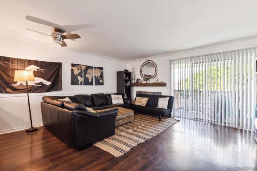 Come see this 2 bed 1 bath condo in Imperial Beach! This unit features laminate wood flooring, fireplace, and washer and dryer in the unit. The kitchen features custom painted cabinets and stainless appliances. It comes with one assigned parking space and trash. Views to San Diego bay and downtown, close to hiking and biking trails and less than a mile to the beach.
