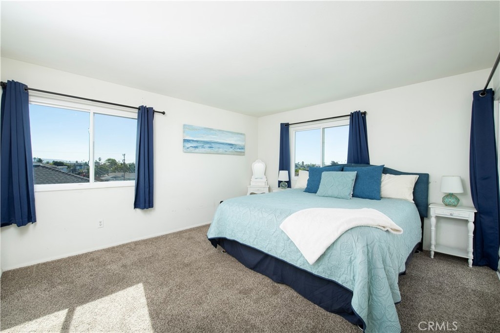 Top floor unit with expansive views of the city and in the distance view the bay & ocean, the Coronado Bridge & San Diego skyline! Enjoy awesome breezes & nightly stunning sunsets as both bedrooms & the living room have doors to the patio. What a wonderful location! You're 1.7 miles to sandy beaches, 1/4 mile to the bay and a couple blocks to the Bayshore Bikeway with 24 miles of land and sea access from Coronado, through South Bay to Downtown San Diego. This light bright condo offers wonderful upgrades: newer insulated doors & windows, master bath "barn door" cabinets, jetted tub, Cat 5e wiring and some updated fans & light fixtures. Here's a huge plus - PAID OFF SOLAR! Most of the appliances have been updated including the washer/dryer (in unit), gas stove with convection oven & 2023 refrigerator with craft orb ice maker. The new owner can add cosmetic updates that would finish the look by painting the interior & the kitchen cabinets. The two bedrooms & baths are separated, so the layout is great for roommates. This 7 unit building has a security gate and a common area rooftop view deck. Another big plus: the private HUGE garage offers OFF STREET PARKING accommodating 2 cars plus storage space. The surrounding area offers a variety of restaurants, shopping, a great beachy feel with new coffee shops, breweries and eateries popping up frequently. If you haven't been to Imperial Beach lately, you must come see the changes! The HOA covers sewer, trash, front yard maintenance, building insurance & garage electricity all for only $275/mo. Enjoy the outdoor lifestyle that Southern California is known for with year round temperate climate all for a GREAT PRICE!