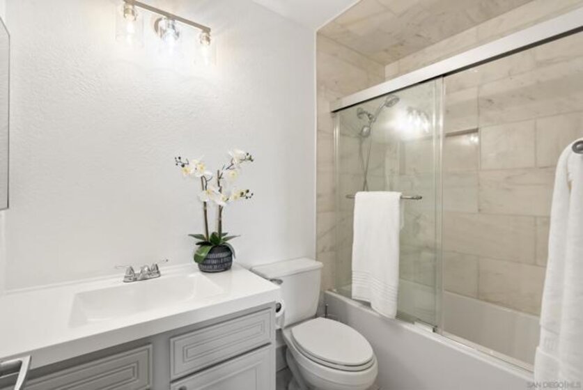 VA APPROVED! Rarely available 2 bed 1 bath condo in Imperial Beach with a spacious, functional layout and laminate flooring throughout. The kitchen has been thoughtfully remodeled with a custom backsplash, butcher block countertops, and newer appliances, giving the space a fresh, modern feel. The entire unit has also been recently repainted, making it truly move-in ready. Additional features include a full-size washer and dryer replaced in October 2021 and a water heater replaced in June 2020. Both bedrooms offer comfortable space and great natural light. The unit includes two dedicated side-by-side parking spaces with storage in a gated underground garage. Ideally located less than a mile from the beach, 15 minute drive to Coronado, close to local shops, dining, walking/biking trails, and several naval bases.