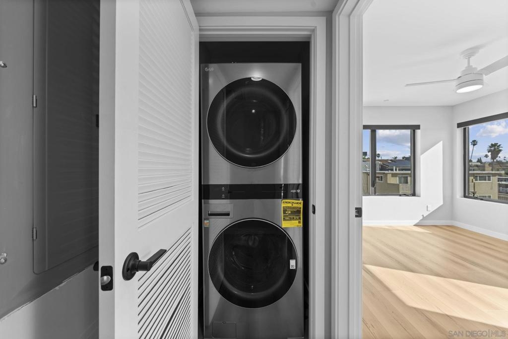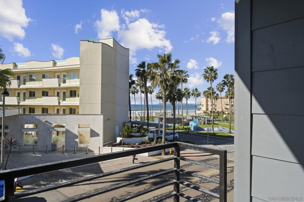 This new construction is zoned for vacation rentals and offers panoramic ocean views—views from every room. The home includes a primary suite with view decks and walk-in closets, an 1290Sqft Extra Large rooftop deck featuring an outdoor kitchen and fireplace. Solar panels are included. Appliances are all new (Thermador), and the interiors make use of high-quality materials. The property features 2 bedrooms, 2 bathrooms. The open floor plan connects the dining and living rooms, while cantina-style doors open to the front yard, extending the living space. The kitchen is equipped with a large waterfall quartz island, custom European contemporary style cabinetry, quartz countertops, and a spacious pantry. Finishes and fixtures are high-end, and tilework is detailed. Professionally designed spaces. The rooftop deck contains Coyote appliances and a fireplace. There are views of the ocean, San Diego Bay, and the estuary. Roof Top Deck is included in square footage. Unit includes stubout for future charging Station. And storage closet for surf boards and bikes.
