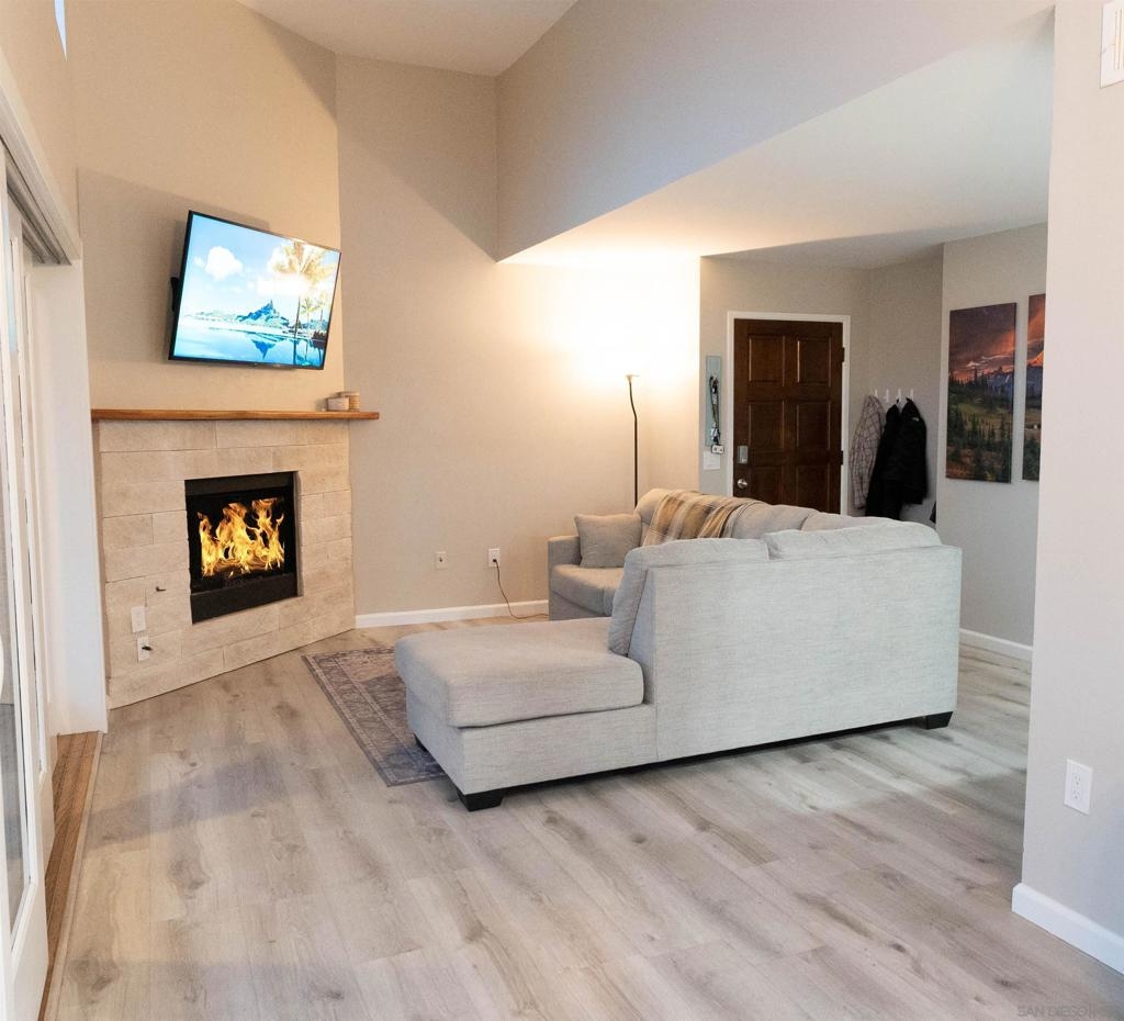 Welcome home to this beautifully renovated corner-unit condo, a dream for beach lovers! Nestled in the gated Beach & Bay Villas community, this home is just moments from Egger Highlands and minutes from the iconic Imperial Beach Pier Step inside to an inviting open-concept layout with soaring vaulted ceilings, Clerestory windows, and high-end finishes throughout. The stylish interior boasts quartz countertops, elegant wood flooring, and a cozy fireplace in the living room. Convenience is key with an in-unit washer and dryer, plus a spacious balcony—ideal for entertaining or simply soaking in the refreshing ocean breeze. Enjoy secure parking in the attached gated garage with two designated spaces. The community also features a pet-friendly dog run and offers easy access to parks, beaches, restaurants, shopping, public transit, and major freeways for effortless commuting. Don't miss this coastal gem! Welcome home to this beautifully renovated corner-unit condo, a dream for beach lovers! Nestled in the gated Beach & Bay Villas community, this home is just moments from Egger Highlands and minutes from the iconic Imperial Beach Pier. Step inside to an inviting open-concept layout with soaring vaulted ceilings, Clerestory windows, and high-end finishes throughout. The stylish interior boasts quartz countertops, elegant wood flooring, and a cozy fireplace in the living room. Convenience is key with an in-unit washer and dryer, plus a spacious balcony—ideal for entertaining or simply soaking in the refreshing ocean breeze. Enjoy secure parking in the attached gated garage with two designated spaces. The community also features a pet-friendly dog run and offers easy access to parks, beaches, restaurants, shopping, public transit, and major freeways for effortless commuting. Don't miss this coastal gem!